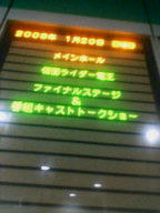 今日はぴろし監督の舞台挨拶もあり、熱い夜になりました。 監督は関西弁のりのりで(笑)全然時間が足りません(^^;) 未成年がいる関係で、上映時間入れて23時を越えられないんで、支配人はマイク片手に冷や汗流してましたよ。 にしても監督は大阪に住んでいたらしく、久々な関西にご満悦☆ 圏外からの方も来られていて、改めて作品の凄さと監督の人気を感じました。 中田プロデューサーも来阪されてて、偉い方二人を拝見できて良かったです。 作品はと言うと、もうキレイで素敵でO(><;)(;><)Oあっというまに過ぎるほど、スピード感があって…GAMEまだ全作終わってないんで(笑)無性に続きをしたくなりました。 ハセヲの叫びと、「shino」と名前を呼ばれる度に妙に反応してしまう自分はやっぱり好きなんだなぁ☆この声…と再確認。 遅い時間だけど本当に行って良かったですvvv 上映終了後、監督のサイン会もあったんですが、時間が無かったので残念だけどスルー(泣) でも、舞台挨拶の撮影がOKだったので、楽しませていただきました☆ 今後のネタバレしそうになって、起こられるお茶目な監督に万歳です(笑)